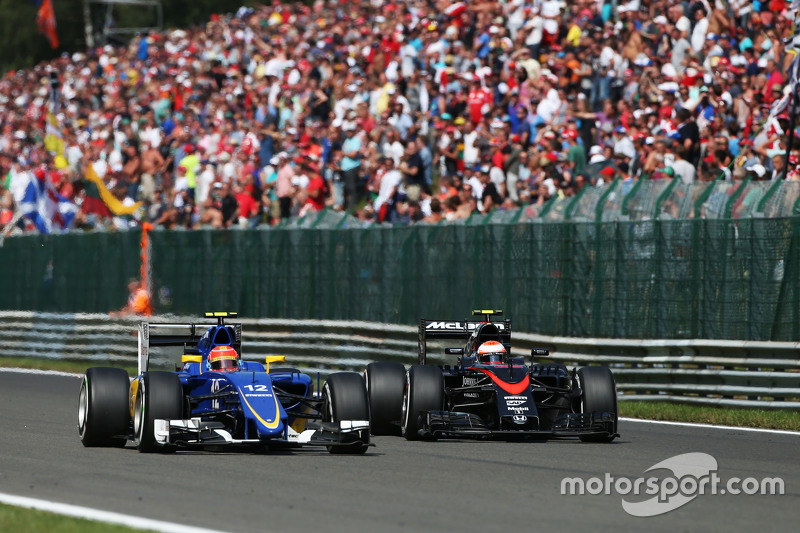 Тем временем, Макс Ферстаппен совершил дерзкий обгон Фелипе Насра в Blanchimont.