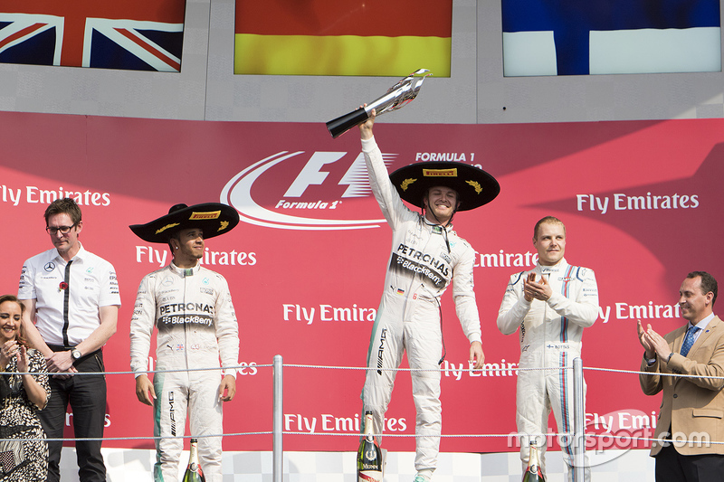«Это лучший подиум в моей жизни!», признается Росберг. «Тысячи людей скандировали мое имя после победы на потрясающей трассе… Это невероятно! В такие моменты чувствуешь себя рок-звездой на сцене – я наслаждался каждой секундой. Спасибо всем мексиканским болельщикам, сделавшим мою победу особенной. Спасибо Берни Экклстоуну и организаторам, которые напряженно работали, чтобы провести этот потрясающий этап. Для меня уик-энд прошел идеально. Я хорошо провел квалификацию, контролировал ход гонки, отвечая каждый раз, когда Льюис приближался. Было сложно, поскольку ведущим колесам не хватало сцепления, особенно на холодных шинах после ухода автомобиля безопасности, но в конце гонки я чувствовал себя комфортно. Скорость в этот уик-энд стала результатом великолепной работы моих инженеров – мы нашли великолепные настройки для этих условий. Сейчас я жду этап в Бразилии. Всегда здорово приезжать на гонку после победы, и я надеюсь, что смогу сохранить свою форму и в Интерлагосе».
