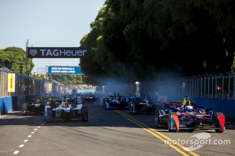 Бёрд отлично стартовал с поула, но Николя Прост (Renault e.dams) пытался атаковать его в первых поворотах. Того, в свою очередь, в страхе держал пилот Aguri Антонио Феликс да Кошта. Лукас Ди Грасси пробился на 6-е место, а Буэми за пару кругов отыграл четыре позиции и затем обошёл ещё и Ника Хайдфельда. Его следующими жертвами стали Бруно Сенна и Даниэль Абт: через семь кругов Себастьен ехал уже 11-м.