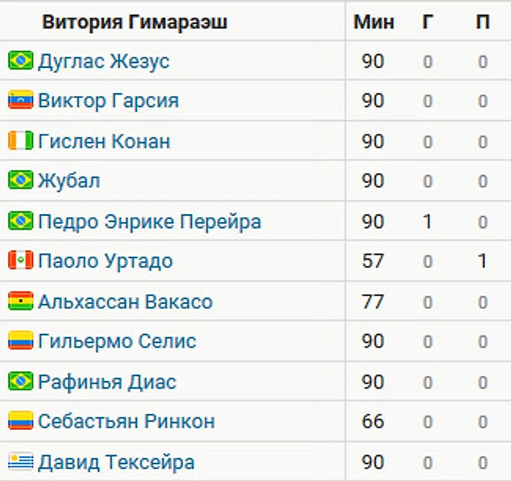 4 бразильца, 2 колумбийца, венесуэлец, ивуариец, перуанец, ганец и уругваец.