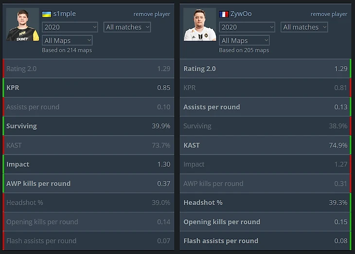 В 2019 году между ними развернулась невероятная борьба за звание лучшего игрока мира, но победил все-таки француз. В этом году, несмотря на игры в онлайне, герои те же. Оба игрока имеют рейтинг 1.29, из ближайших к ним представителей тир-1 сцены только Бенжамин «BlameF» Бремер из Complexity с показателем 1.23.