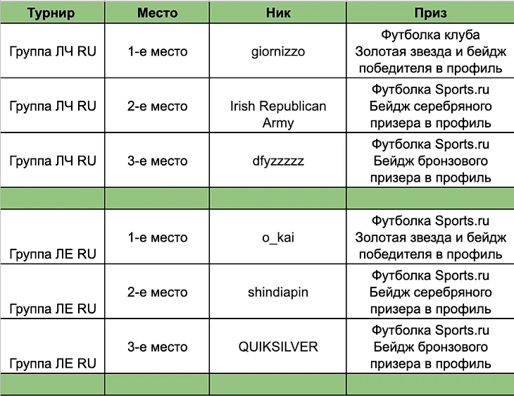 Поздравляем победителей и призеров, и ждем всех в fantasy-турнирах по плей-офф Лиги чемпионов и Лиги Европы! Это будут отдельные турниры, к которым нужно собрать новые команды.