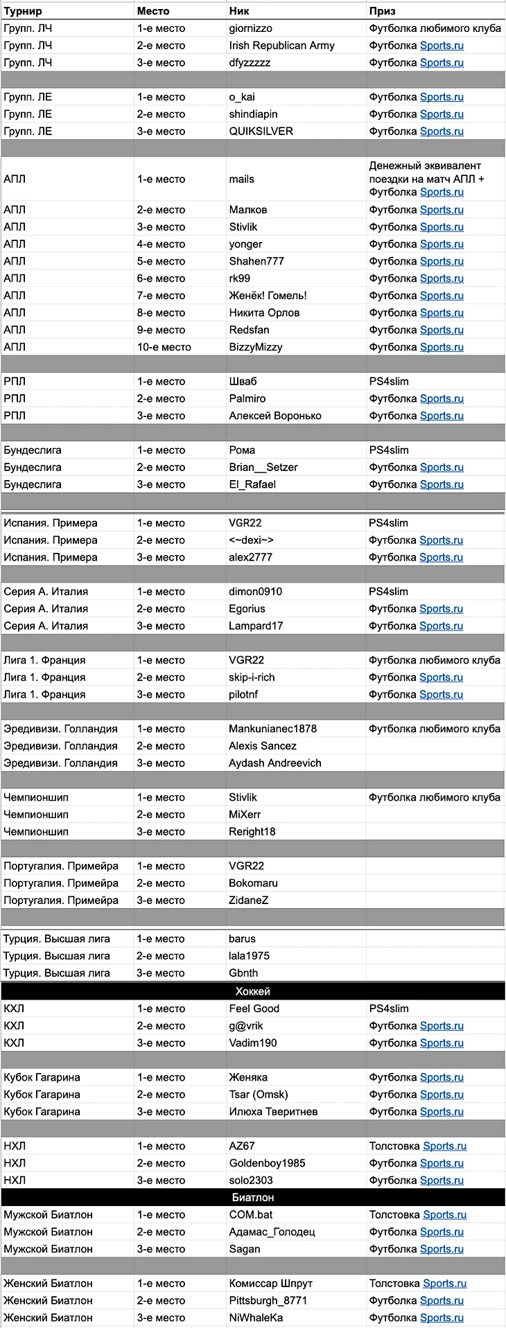 Чтобы получить приз, необходимо на адрес awards@sports.ru прислать следующие данные: