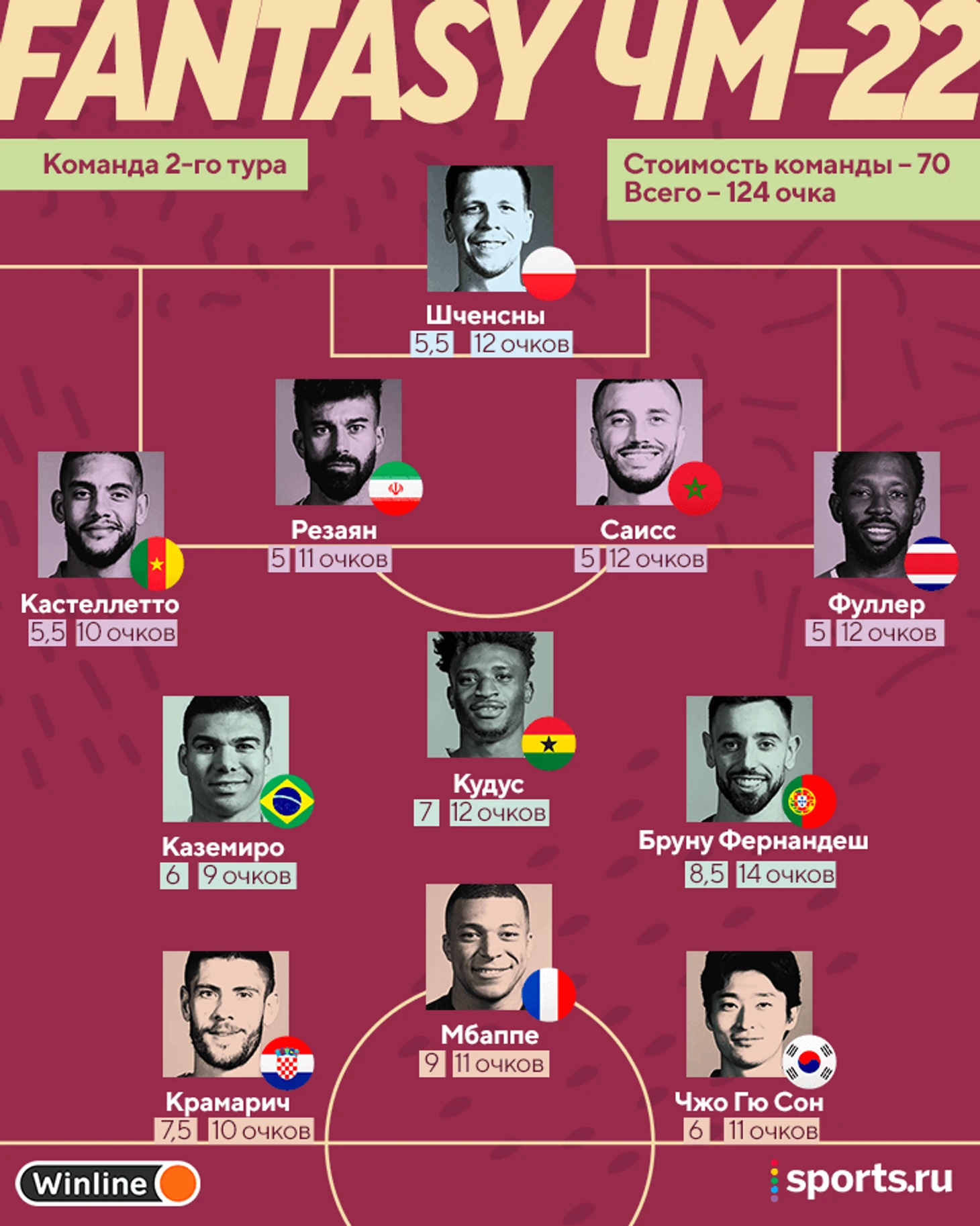 ✨ Fantasy-сборная 2-го тура ЧМ: Бруну и Мбаппе рядом с бюджетной защитой из Ирана, Камеруна и Коста-Рики