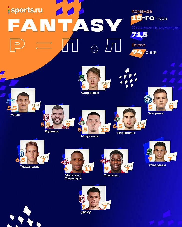 Сборная 18-го тура Мир РПЛ в фэнтези – последняя в 2023-м.