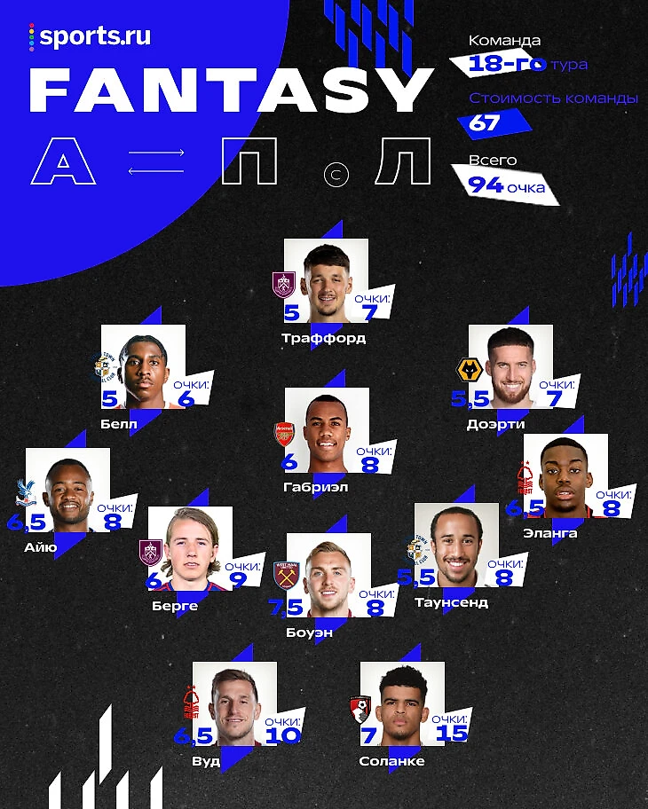 ● состав – лучшее, что можно было получить в туре, если собирать команду по фэнтези-правилам (общая стоимость – 100, максимум двое из одного клуба, при равенстве очков проходит более дешевый).