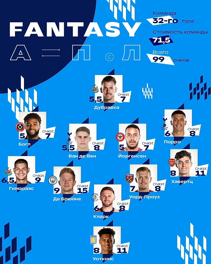 Это герои 32-го тура в фэнтези АПЛ. Сборная составлена так: