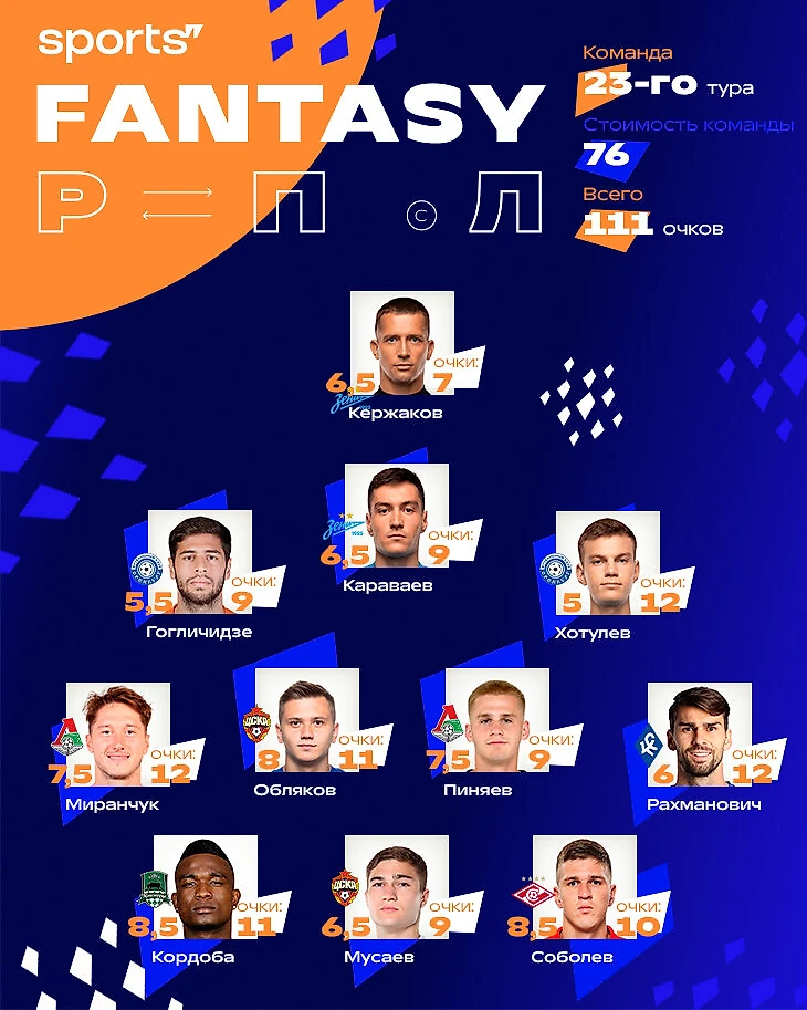 Сборная 23-го тура Мир РПЛ в фэнтези.