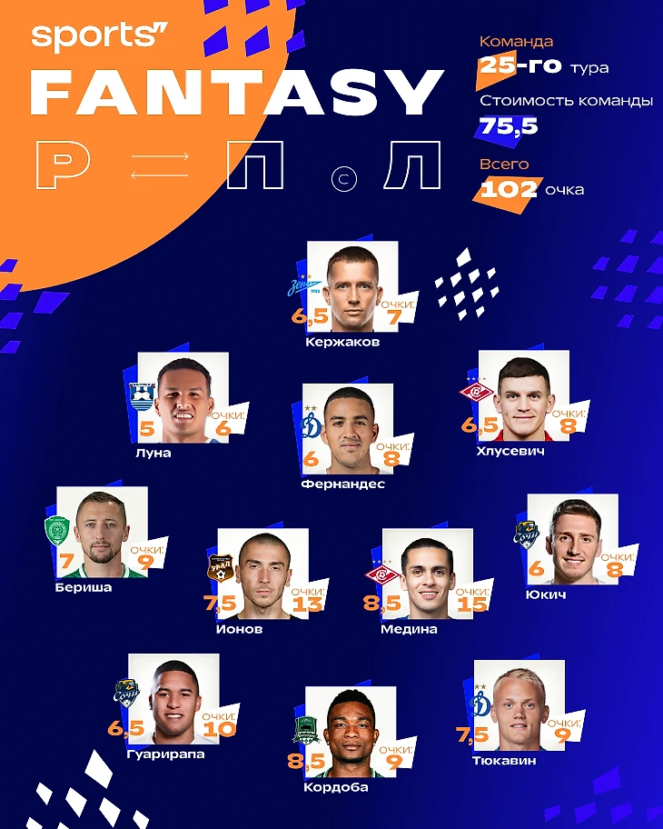 Сборная 25-го тура Мир РПЛ в фэнтези.