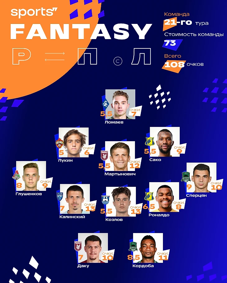 Сборная 21-го тура Мир РПЛ в фэнтези.