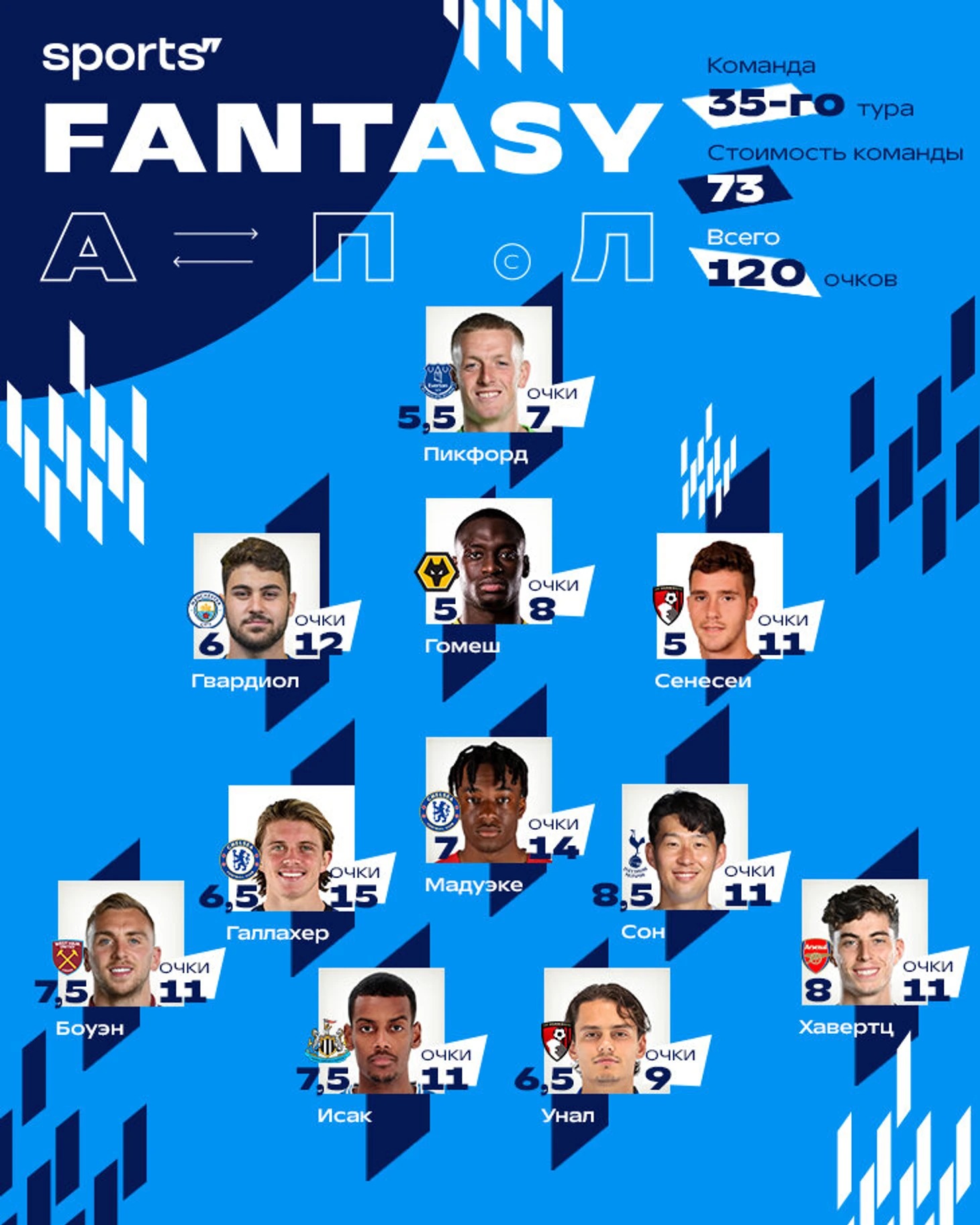 У англичанина гол и ассист против «Астон Виллы», он лучший в матче по касаниям в штрафной (7) и второй по ударам (4). Мадуэке впервые в карьере забил и отдал результативную передачу в одной игре АПЛ. Против «Тоттенхэма» уже был не так активен, всего один удар и два созданных шанса. С одной стороны, дальше у «Челси» неплохой календарь: «Вест Хэм», «Ноттингем Форест», «Брайтон» и «Борнмут», но с другой – в команде есть потрясающий обязательный пик – Коул Палмер, а брать двоих полузащитников нестабильной команды слишком большая роскошь. Но из-за двух матчей в 37-м туре стоит задуматься над его кандидатурой. Альтернатива: Кай Хавертц снова в огне, за два последних матча у него три гола и ассист. За четыре тура среди полузащитников он лучший по явным голевым моментам (6). У «Арсенала» нет двух матчей в 37-м туре, но команда в хорошей форме, она вторая по голам (13) за четыре тура, а у Хавертца все еще маленький процент владения – 4,78.