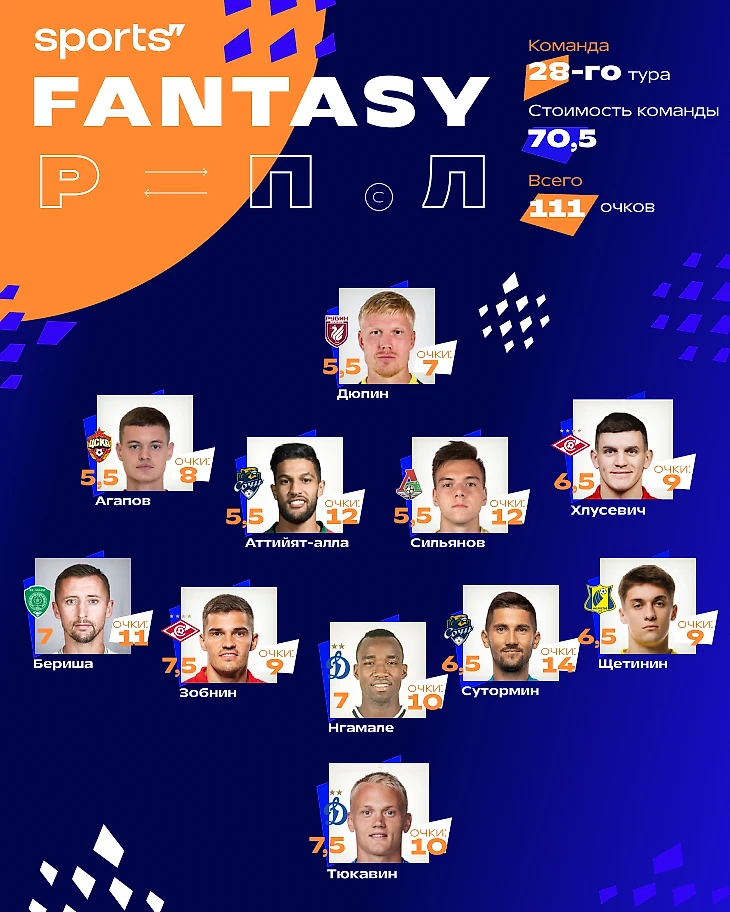 Сборная 28-го тура Мир РПЛ в фэнтези-турнире.