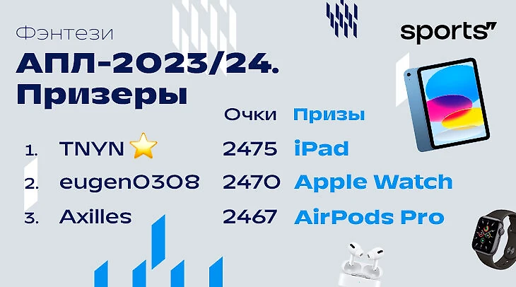 Чемпион АПЛ-2023/24 – это не только «Манчестер Сити». Это еще и TNYN – наш пользователь Юрий, который выиграл фэнтези-турнир Премьер-лиги.