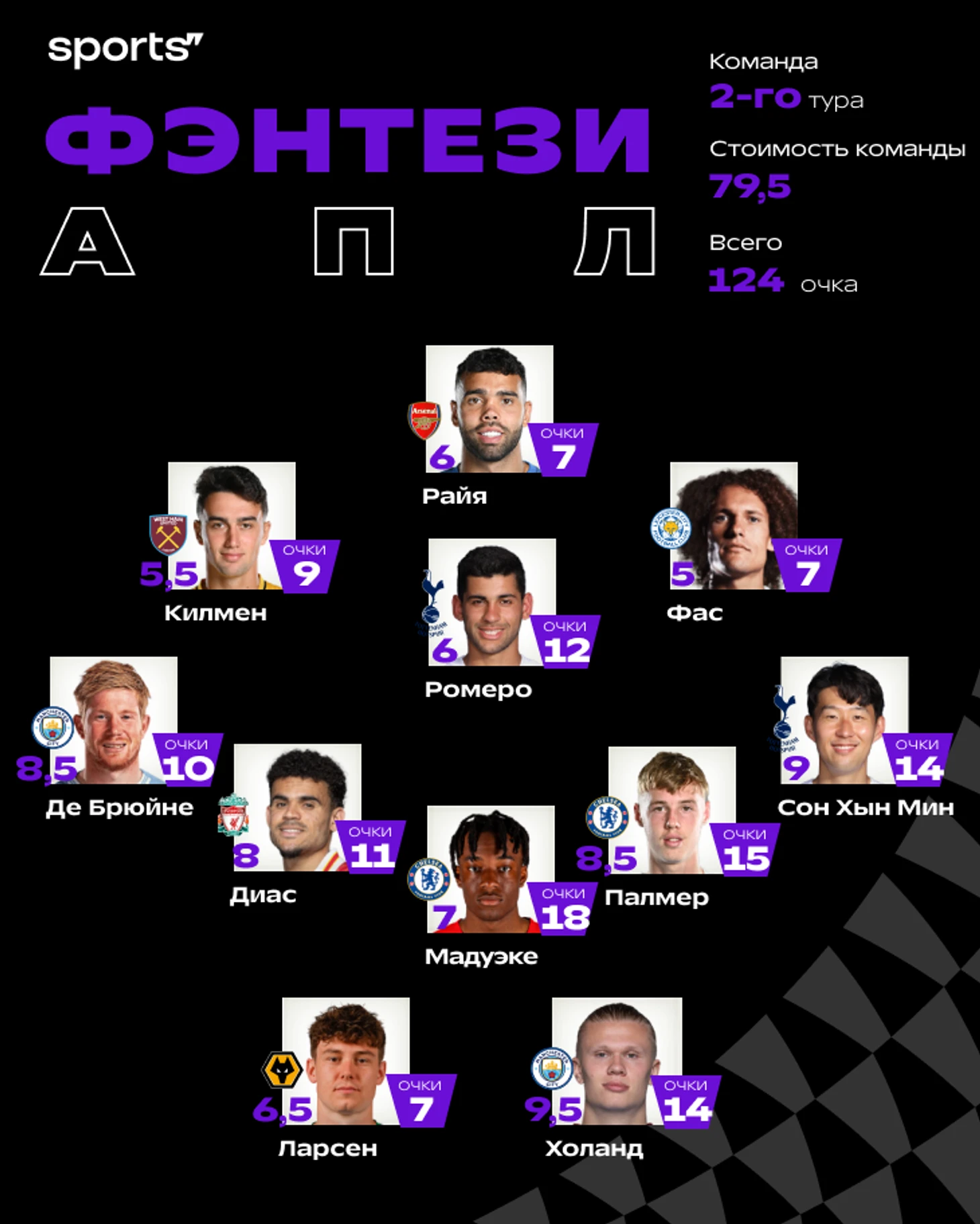 ● состав – лучшее, что можно было получить в туре, если собирать команду по фэнтези-правилам (общая стоимость – 100, максимум двое из одного клуба, при равенстве очков проходит более дешевый).