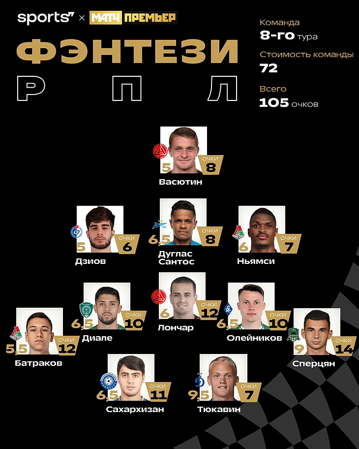 Сборная 8-го тура фэнтези-турнира РПЛ.