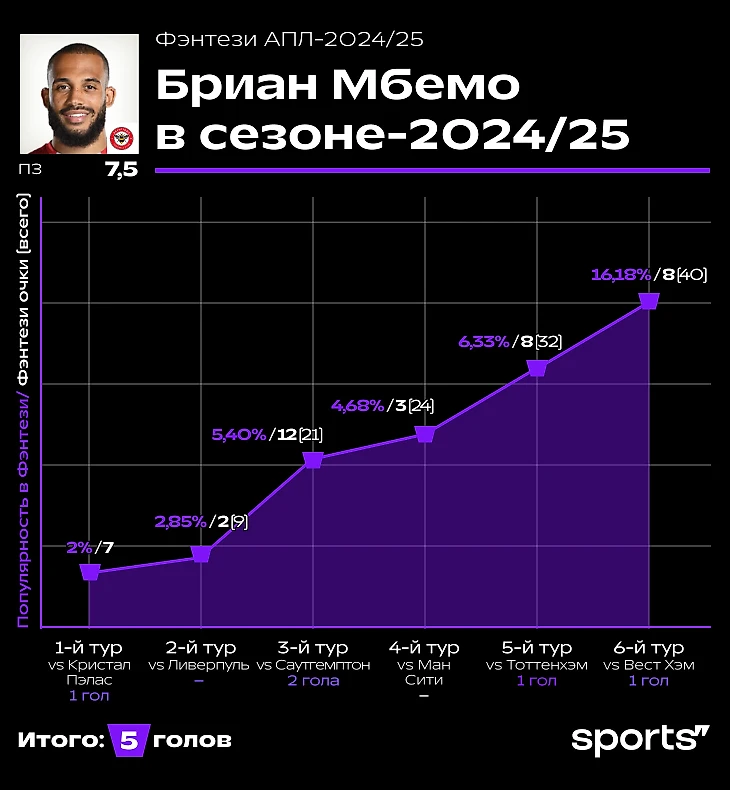 Команда на 12-м месте в АПЛ, но популярность Мбемо растет от тура к туру. Вот почему.