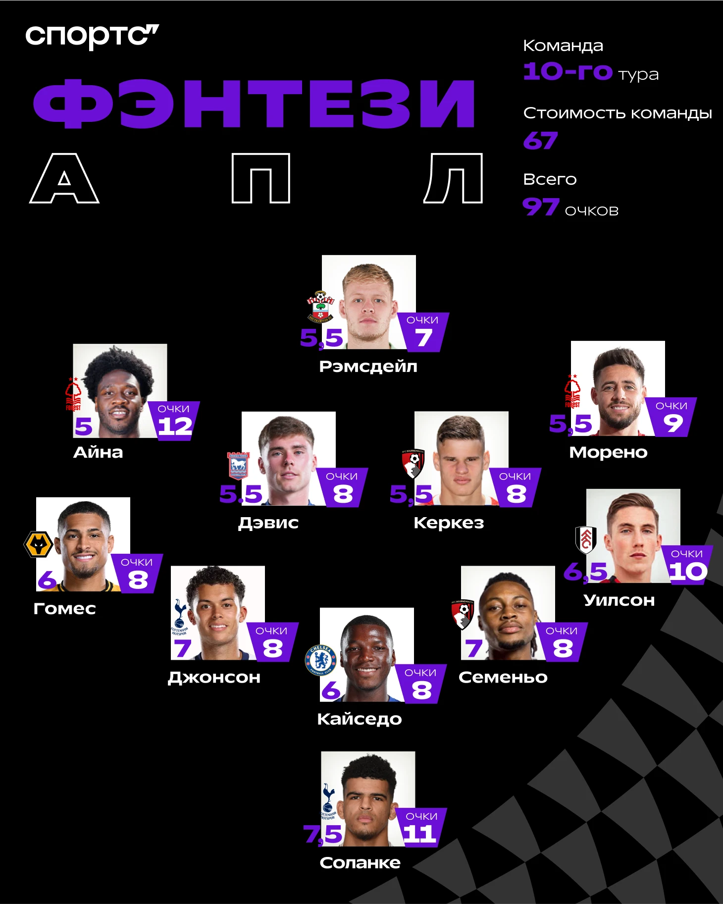 У нигерийца первое результативное действие в сезоне. «Форест» впечатляет: третье место абсолютно по делу, четыре сухих матча, меньше пропустил и допустил моментов только «Ливерпуль». В следующих турах «Ньюкасл», «Арсенал» и «Ипсвич» – вполне можно поймать пару сухих матчей от Айны.
