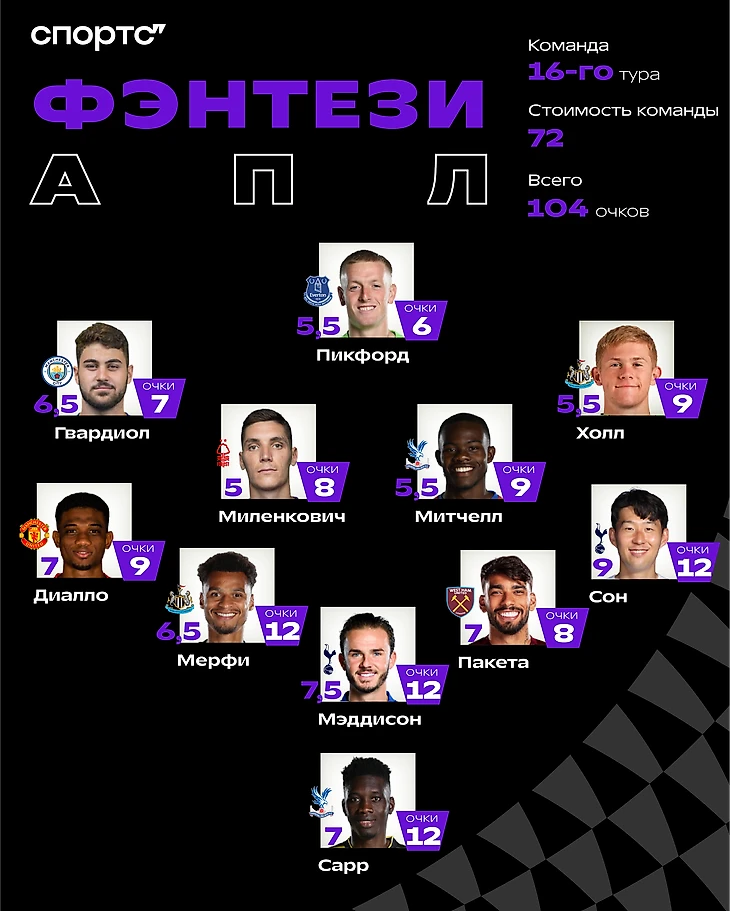 Это самые эффективные игроки 16-го тура в фэнтези АПЛ на Спортсе’‘