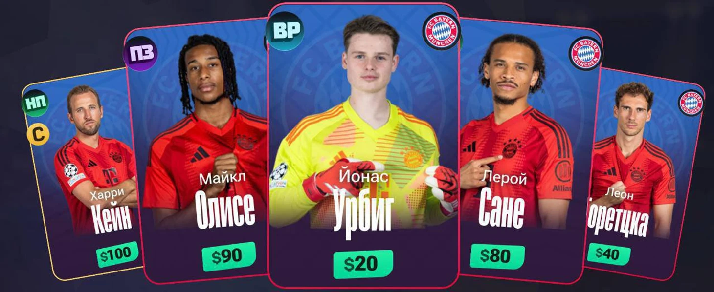 Кейн – железный выбор. Олисе очень хорош в последнее время. Урбиг должен играть, ведь Нойер травмирован. Горетцка выгрыз место в основе. К сожалению, чуть-чуть не хватило денег на Мусиалу, поэтому беру Сане, который копит результативные действия.