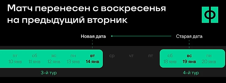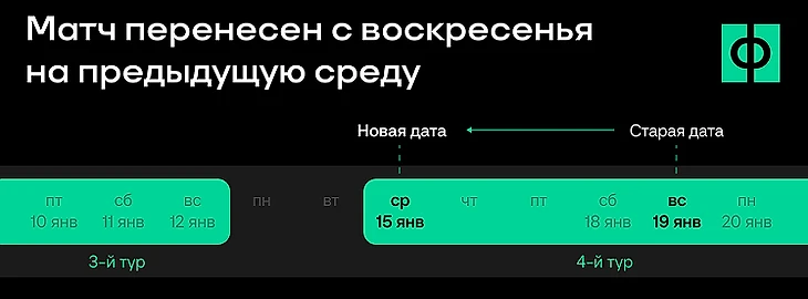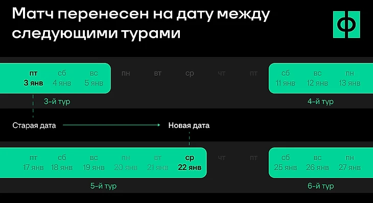 При переносе на более раннюю дату срабатывает тот же принцип: если обновленная дата матча ближе к предыдущему туру, чем к исходному, он войдет в предыдущий.