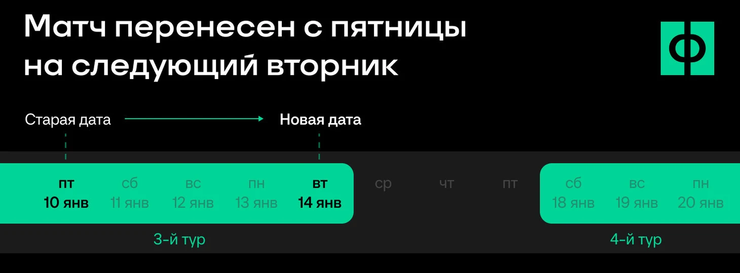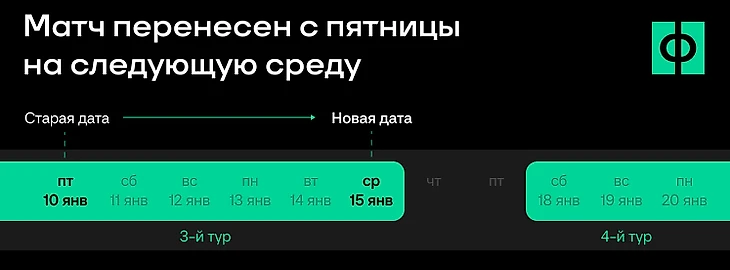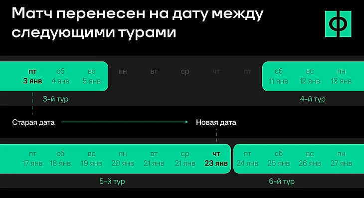 Если новая дата матча ближе к началу нового тура, чем к окончанию предыдущего, игра станет частью следующего тура.