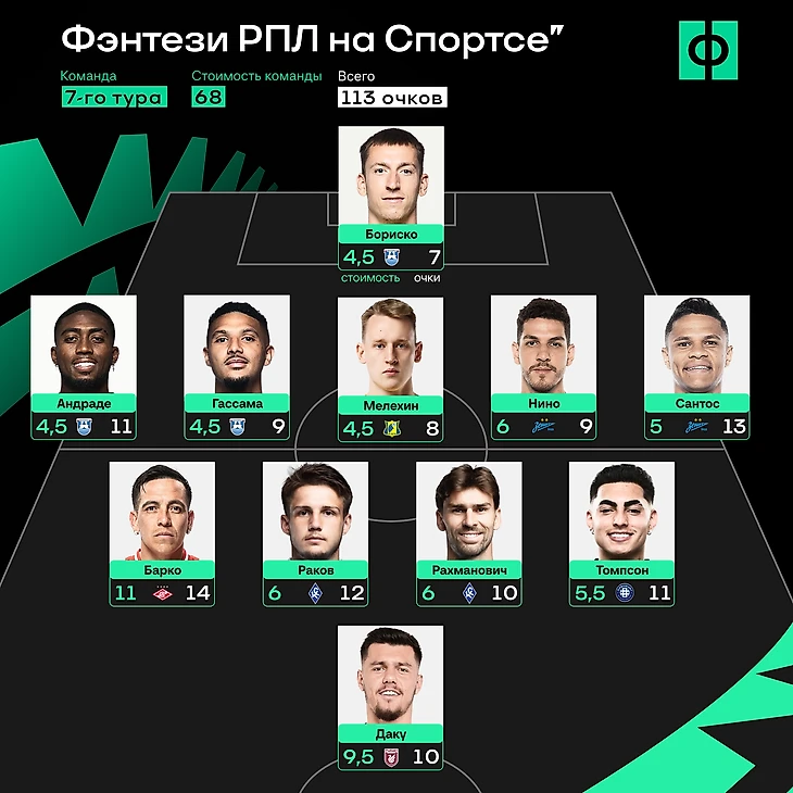 Перед вами сборная 7-го тура фэнтези-турнира по РПЛ: