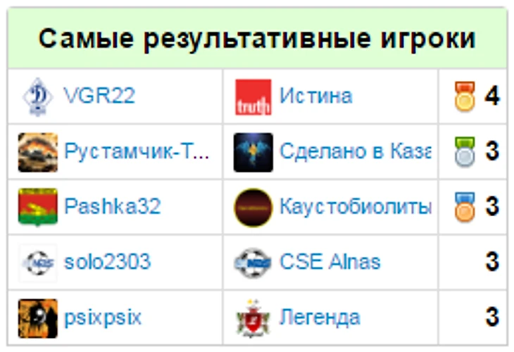 Истина. Лучший игрок: VGR22 - 4 гола, 1 привоз