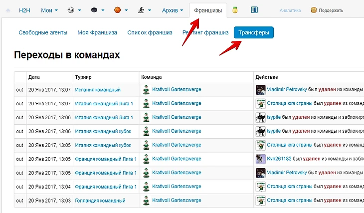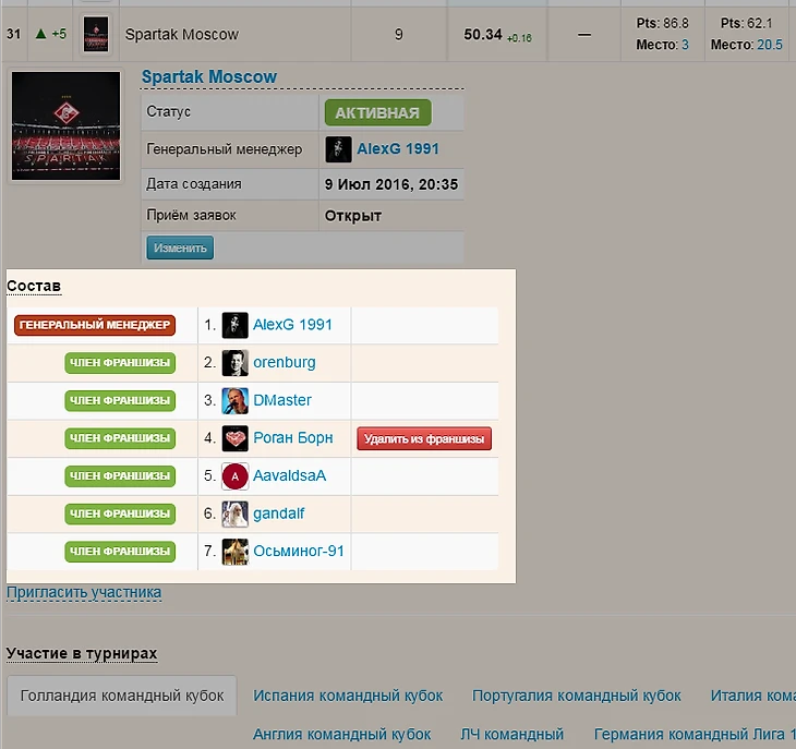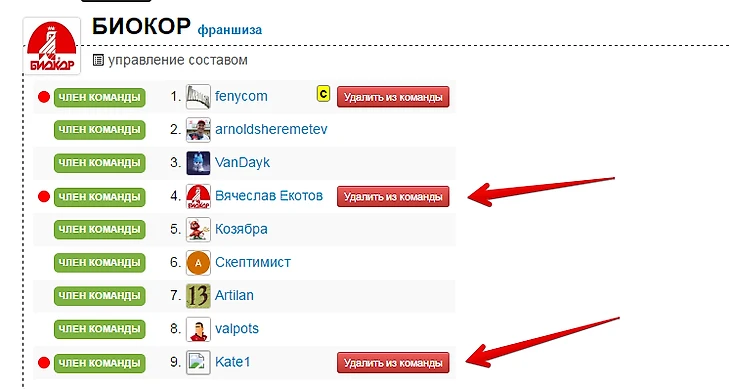 Сегодня на сайте появилась возможность удалять из команд и из франшиз игроков, которые отмечены как "неактивный игрок", "труп".