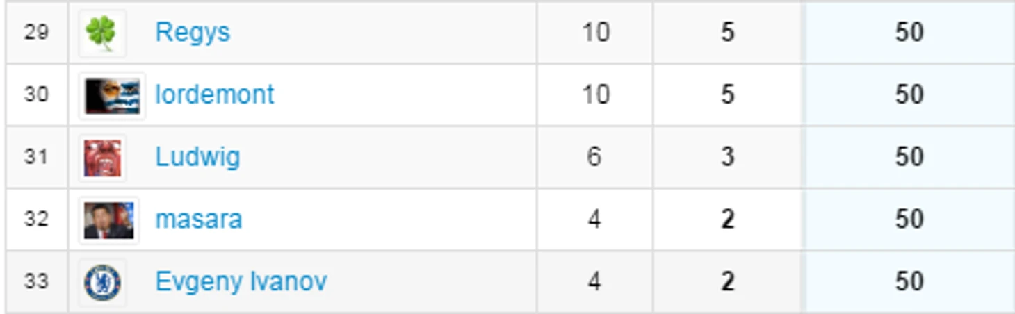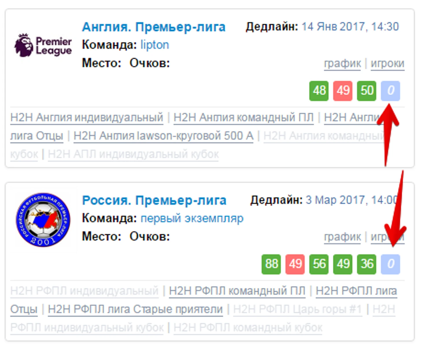 - ivan_16 заявился в РФПЛ И АПЛ, и до сих пор не вылетел ни из одного. Правда, очень скоро это случится: http://fantasy-h2h.ru/epl_2016/stage/4/group/1