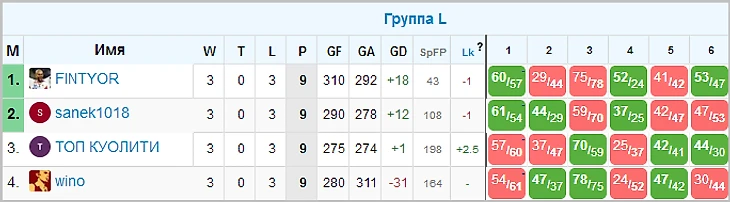 Регламент определения победителя в плей-офф: победы, забитые в раунде, забитые со старта, посев перед ПО (итоги группового этапа)