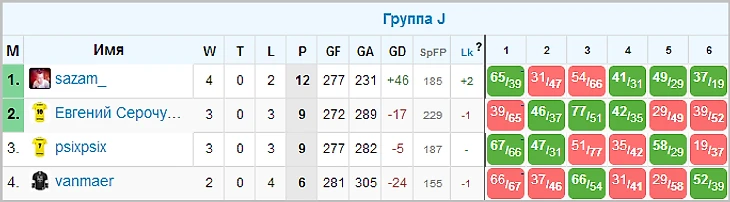 11WIN = ПСЖ, Honey_Badger = Ливерпуль, alex2777 = Наполи, Александр Майоров = Црвена Звезда (out)