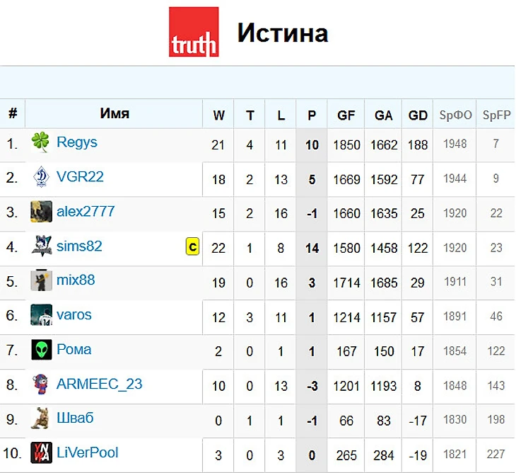 Второе место в этот году занял первый победитель чемпионата в "эру франшиз" - Истина. Отличный сезон, однако провал вначале второго круга заметно пошатнул команду. Невзирая даже на 7 побед в последних 8 матчах, "мстители" были уже слишком далеко. Тем не менее, для Истины это уже 3 медали - в сезоне 2016/2017 команда оформила золотой дубль, победив и в кубке и в чемпионате. Лучшим бомбардиром ФФК в этом сезоне стал их капитан - sims82, наколотив 22 гола, он лишь немного не дотянул до топ 5 в бомбардирской гонке.