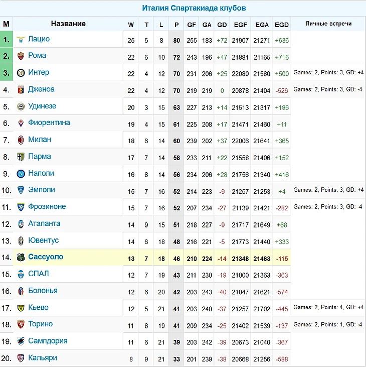 По итогам сезона в Серию А выходят:
