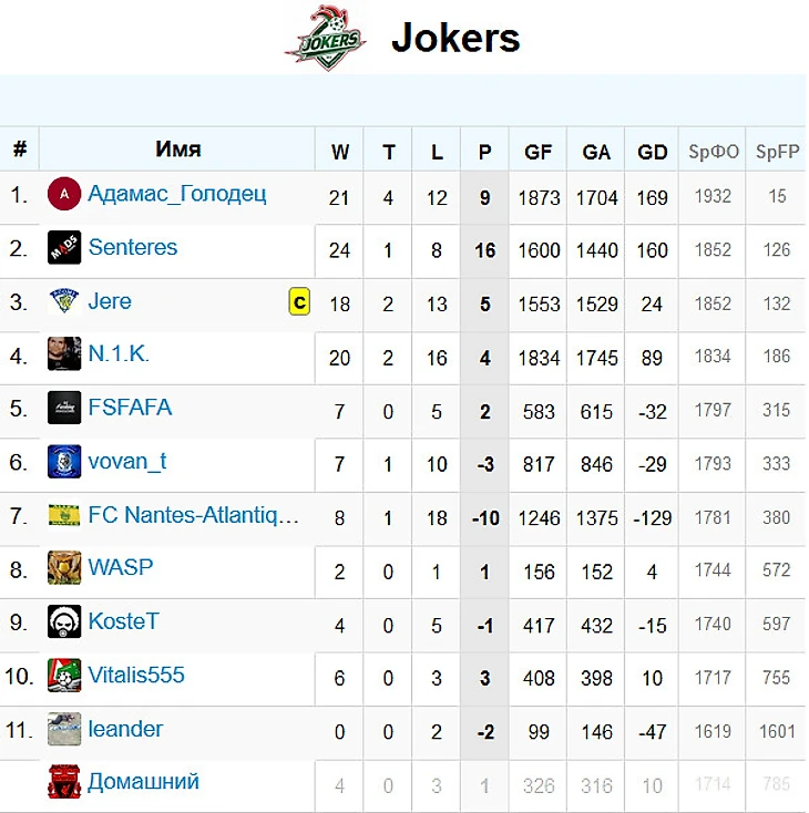 Бронзу в этом году захватили парни из Jokers, которые, только из-за разницы забитых/пропущенных в очных встречах, уступили второе место Истине. А ведь прошлый сезон команда начинала в Серии В, где уверенно заняла первое место. Как и год ранее "интеллектуалы", "джокеры" остановились в шаге от победы в высшем дивизионе сразу после промоушена. В любом случае, 3-е место сходу - это отличный результат, и он был бы невозможен без Senteres, который с 24 голами стал лучшим бомбардиром команды и заняв 2 место в списке лучших во всей лиге.