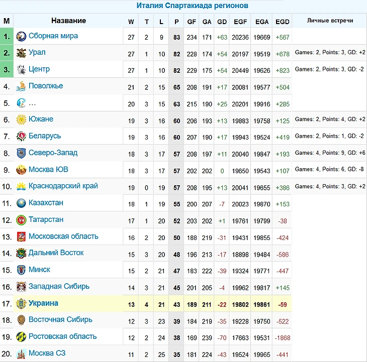 Наименьшее количество голов: Siberian region - 83
