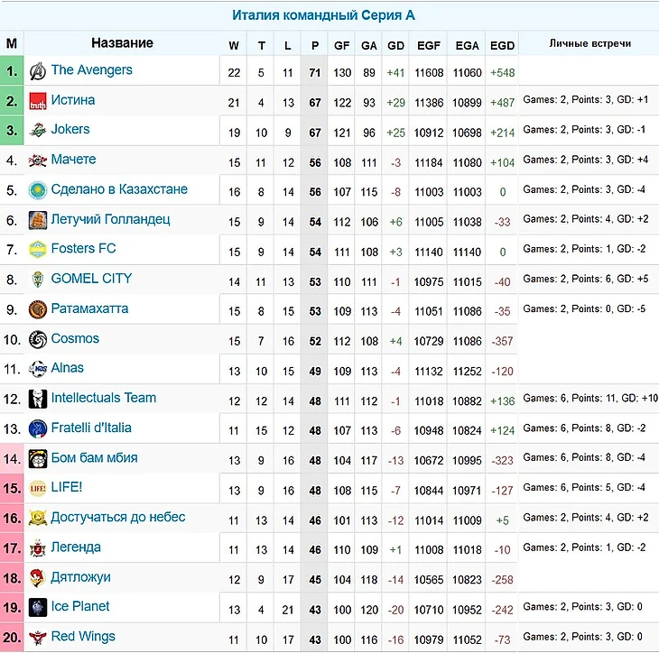 H2H Fantasy Италия 2018/2019. Итоги командных турниров