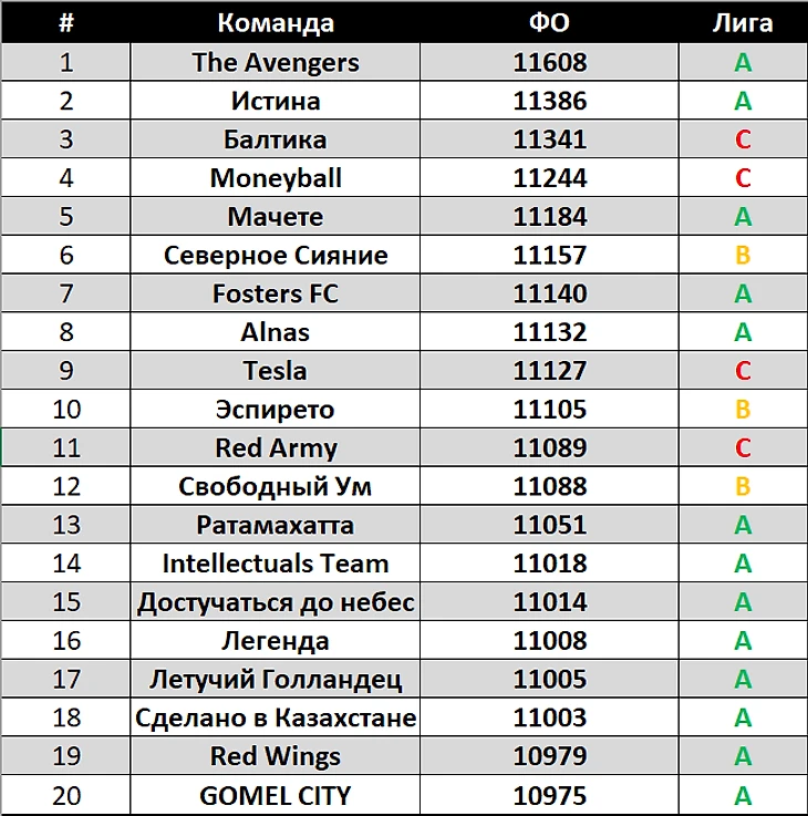 Топ-20 команд по ФО: