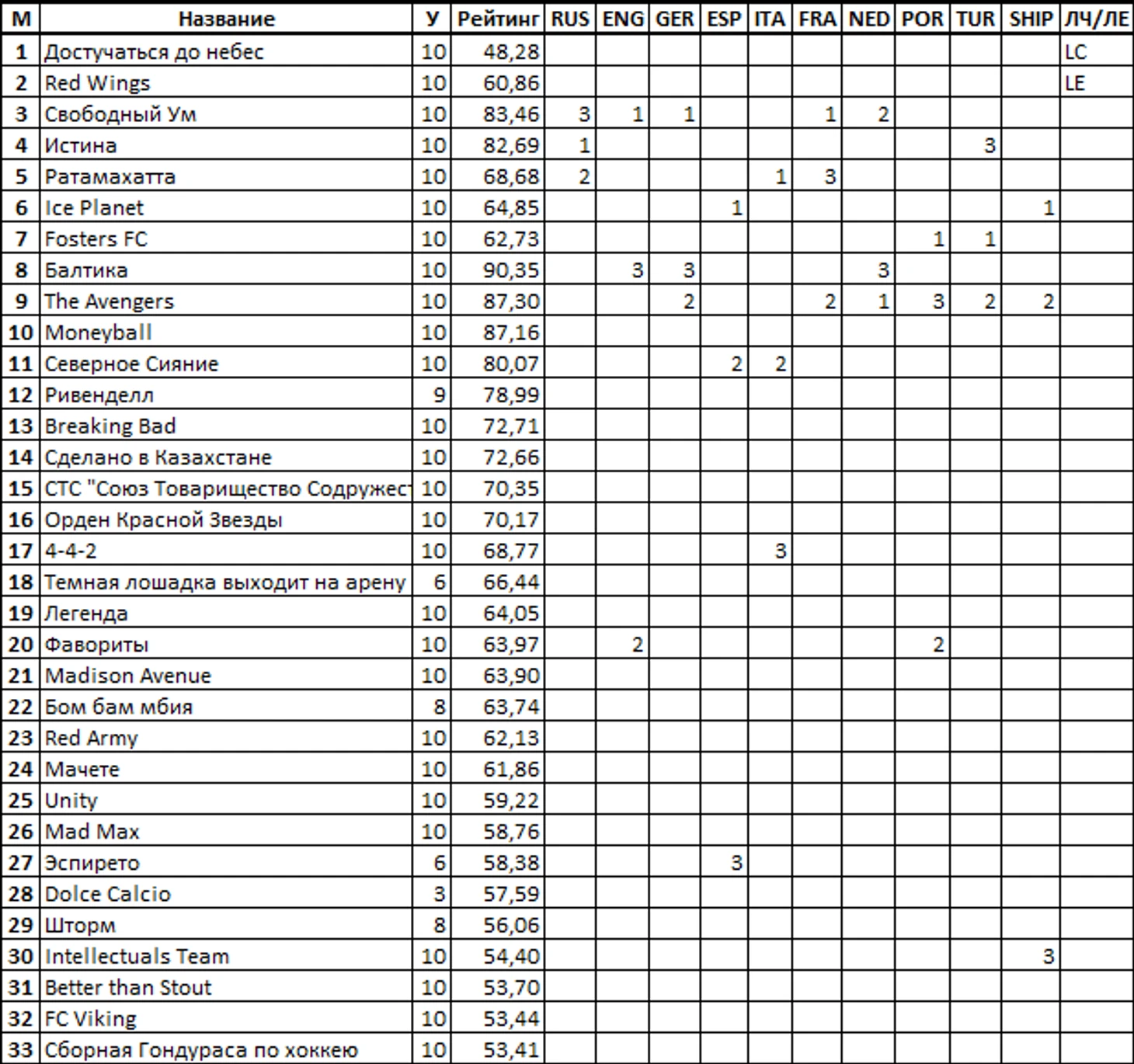 Особенностями рейтинга сполна воспользовались Dolce Calcio, которые, участвуя всего в 3 чемпионатах, феернули во втордивах Англии и Италии и попали в топ-32!