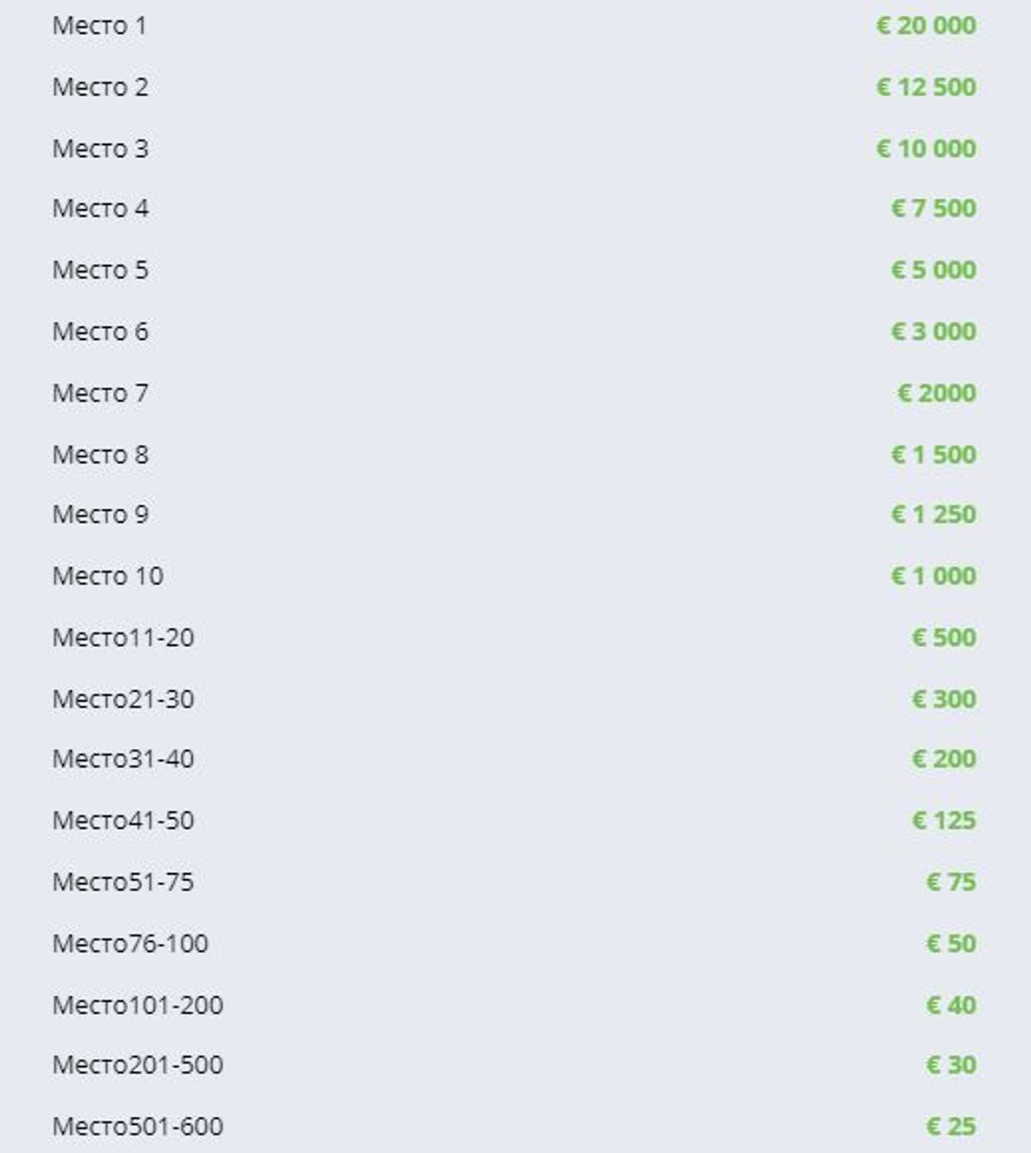 Вход в турнир = 25 евро! Распределение призового фонда 👇