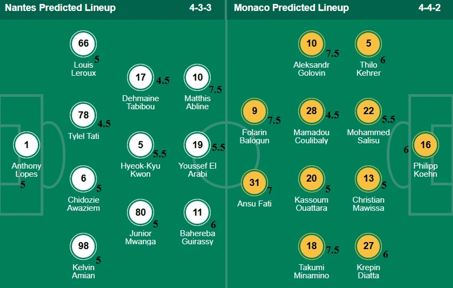 Травмы: Коклен (Нант, ПЗ, 5.5), Лепенан (Нант, ПЗ, 5), Камара (Монако, ПЗ, 7), Дайер (Монако, ЗЩ, 5.5), Погба (Монако, ПЗ, 7), Градецки (Монако, ВР, 5.5), Закария (Монако, ПЗ, 7.5), Вандерсон (Монако, ЗЩ, 6), Кайо Энрике (Монако, ЗЩ, 6)