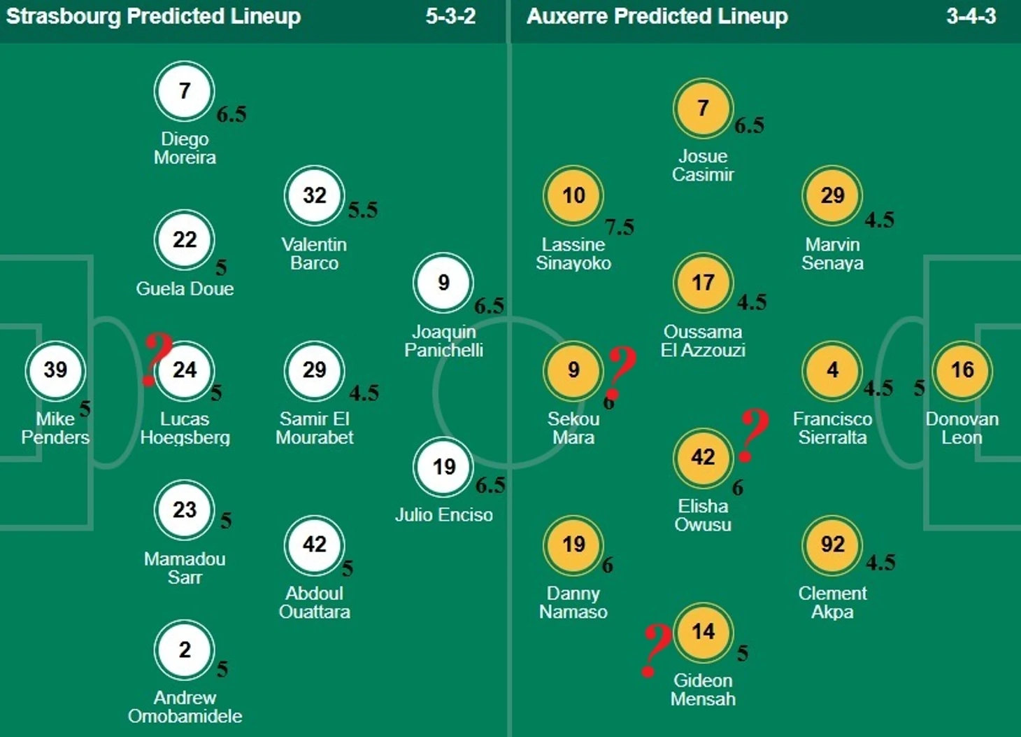 Из атакующих игроков Осера традиционно отмечу малийца Синайоко (НП, 7.5, 3+1, 38 ФО, 19 ударов, 10 ключевых пасов) и чемпиона мира U-17 Дэни Намасо (НП, 7.5, 2+1, 38 ФО, 20 ударов, 10 ключевых пасов). Но у Осера в ближайших турах смущает непростой календарь. У Осера в матче не примут участие нападающий Мара (НП, 6), арендованный как раз у Страсбура и защитник Гидеон Менса (ЗЩ, 5), который ожидает рождения ребенка.