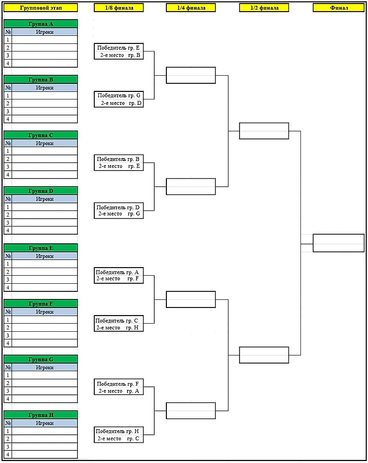Турнир групповой+плей-офф (индивидуальный) Взнос: 550 руб.