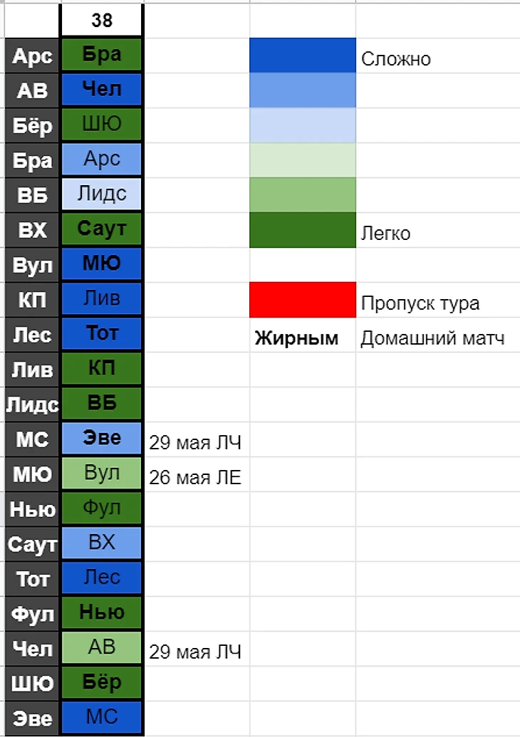 Цвет показывает потенциал матча с точки зрения фэнтези. Во моей статье оценка может быть субъективной, но в данном конкретном примере и по котировкам букмекеров, и по оценкам других фэнтези ресурсов этот матч выглядит именно так.