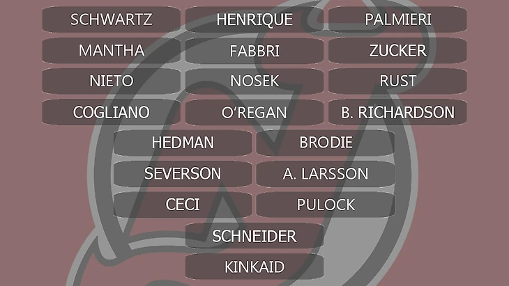 Резерв - Йеспер Фаст(RW), Мэтт Хендрикс(LW), Дэйл Уайзе(LW/RW), Алекс Чейссон(RW), Джейсон Гаррисон(D)