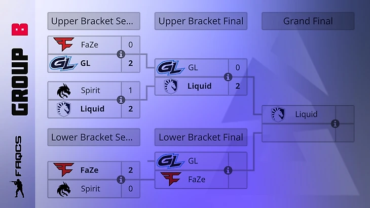 На данный момент в группе лидируют именно Liquid и уже ждут своего соперника в финале, к слову туда могут попасть как FaZe, так и Gamer Legion, сможет ли karrigan завести красную машину - вот в чем вопрос.