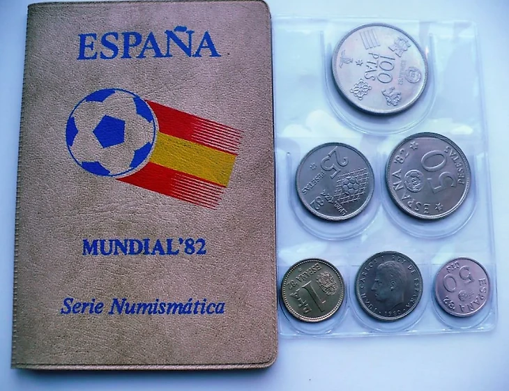 Данная серия состоит из 6 момент разного номинала. Испанцы заранее подготовились к такому масштабному событию как мундиаль и выпустили данные денежные средства уже в 1980 году, то есть за два года до старта самого чемпионата. Тиражи монет были миллионными. Они поступили в свободное обращение, а также продавались полными наборами в специальных альбомах.
