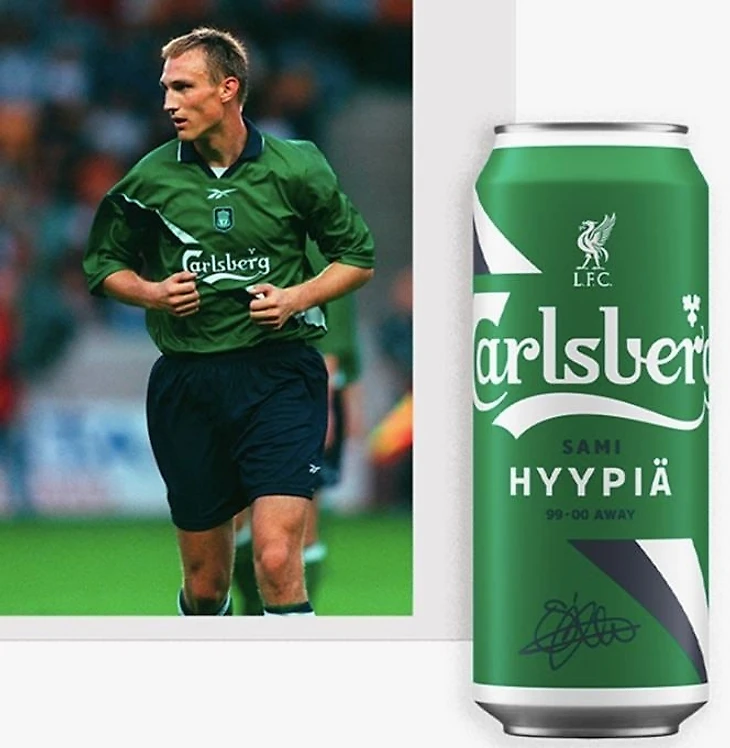 Футбольный клуб "Liverpool" и пивная компания "Carlsberg" решили отметить свое длительное сотрудничество в 30 лет и выпустить лимитированную серию пива в жестяных банках. Каждая банка имеет свой цвет относящийся к определенной форме и игроку, выступавшему в то время.