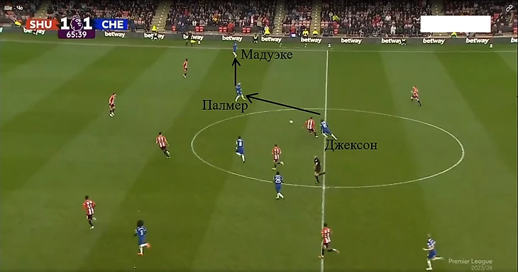 На 66-ой минуте «Челси» реализует атаку через центр (Рисунок 5).