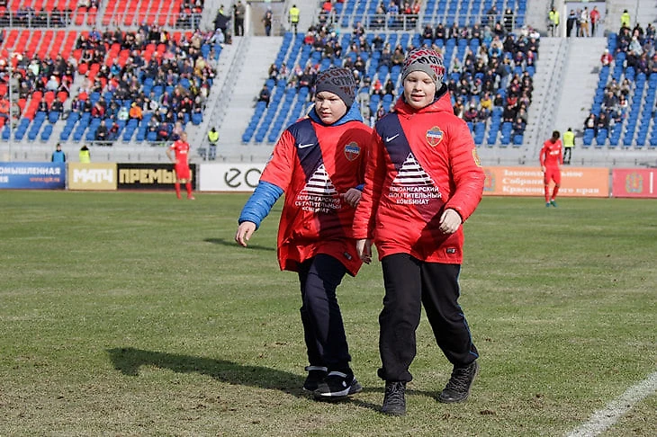 «Енисей» подписал контракты с детьми с ДЦП: они ввели мяч в игре РПЛ и посмотрели матч молодежки со скамейки