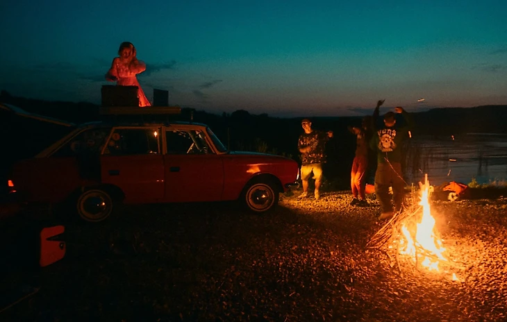 После съемок и кучи удачных кадров, когда на часах было уже 1:30 ночи (а встали мы, напомню, в 4 утра предыдущего дня), мы – попробовав найти ночлег в одном из деревенских ночных клубов – решили спать, где кому получится. Я, Матвей, Соня и Марат легли в машинах, Владимир, Евгений и Лиса – в палатках, а Алексей просто на землю – судя по всему, спал крепче всех. Перед этим мы все поели сырых сосисок и почему-то решили, что это было невероятно вкусно.